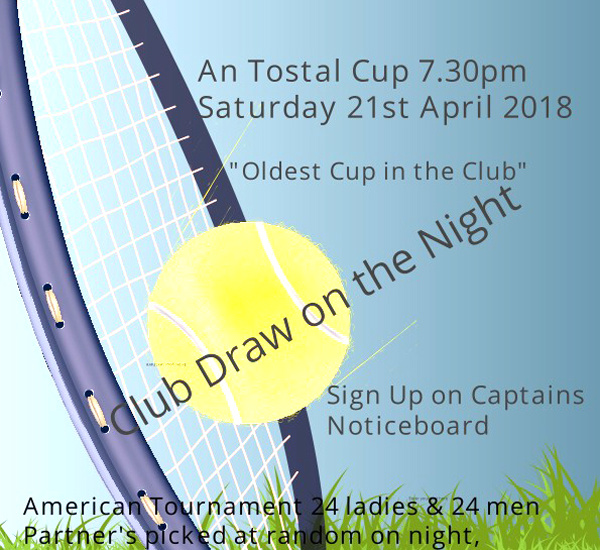 €10 for tennis, food and Club draw